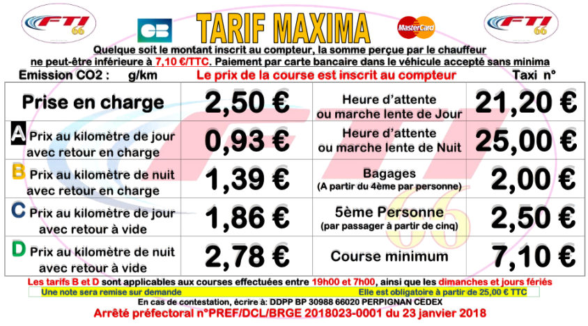 Tarifs taxi 2018 arrêté préfectoral (PDF)